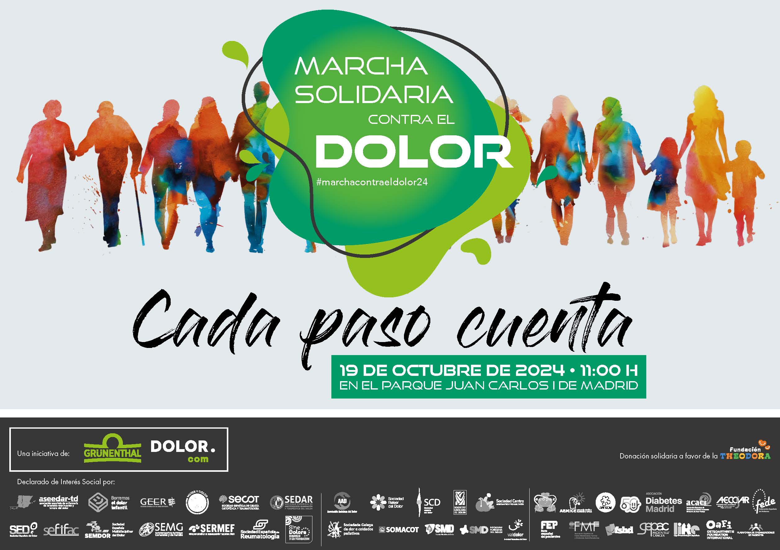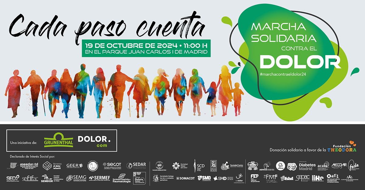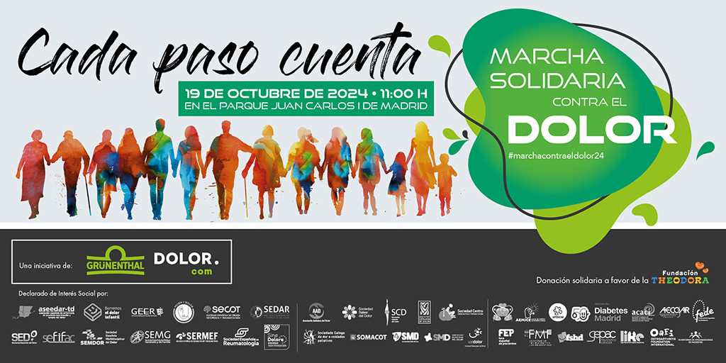 La Marcha Solidaria Contra el Dolor se llevará a cabo el SÁBADO, 19 de octubre de 2024, a las 11:00hs en el Parque Juan Carlos I, de Madrid.