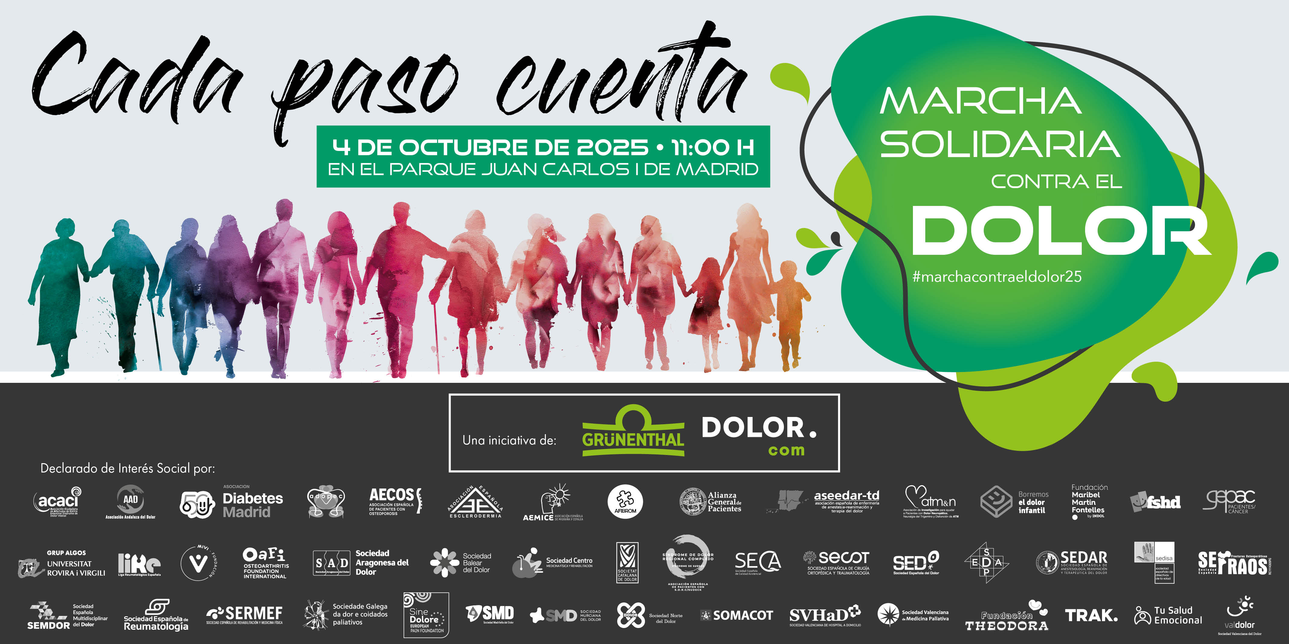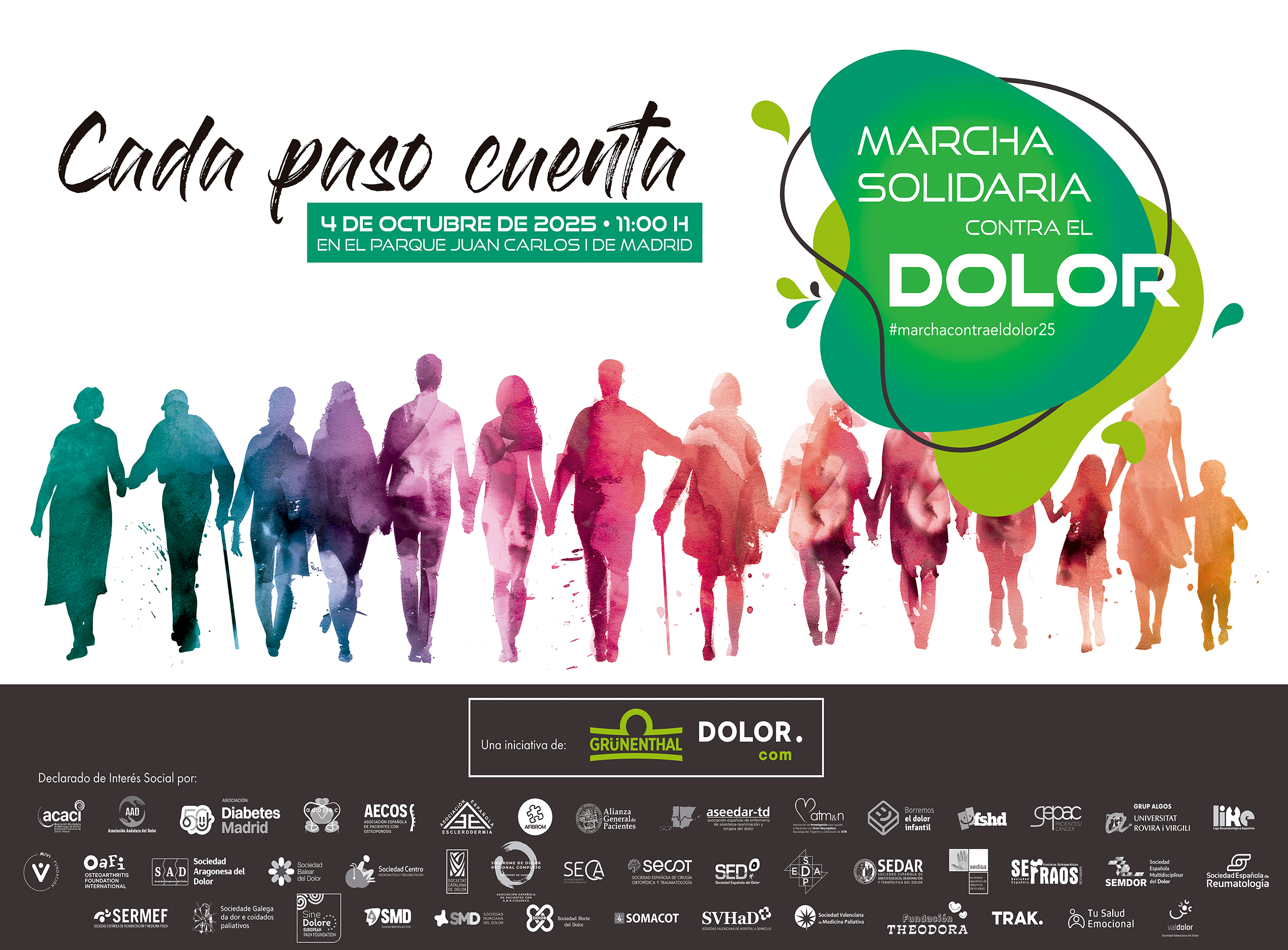 La Marcha Solidaria Contra el Dolor se llevará a cabo el SÁBADO, 4 de octubre de 2025, a las 11:00hs en el Parque Juan Carlos I, de Madrid.